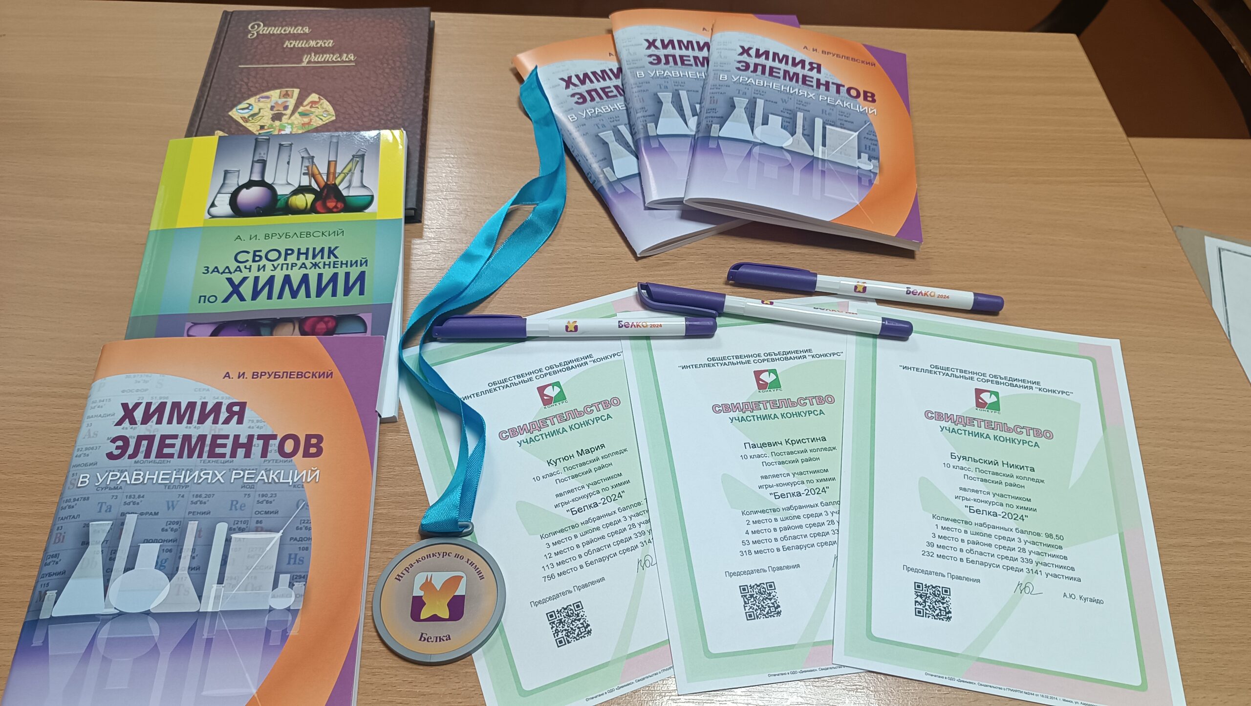 Подведены итоги республиканской игры-конкурса по химии «Белка-2024», в которой приняли участие обучающиеся учебной группы №5-ОП/3 Буяльский Н. (3 место в районе), Пацевич К., Кутюн М. (преподаватель Карачевцева М.В.)