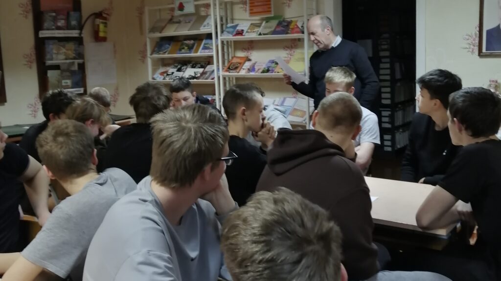 28 января для юношей, проживающих в общежитии, библиотекарь Лущик О.М. провела мероприятие в форме литературного вечера-викторины “Строки, затронувшие душу”. В мероприятии приняли участие: Лущик В.А., председатель Поставской районной организации белорусского союза ветеранов войны в Афганистане; Нестерович Ж.В., педагог-психолог; Прокофьева А.М., воспитатель